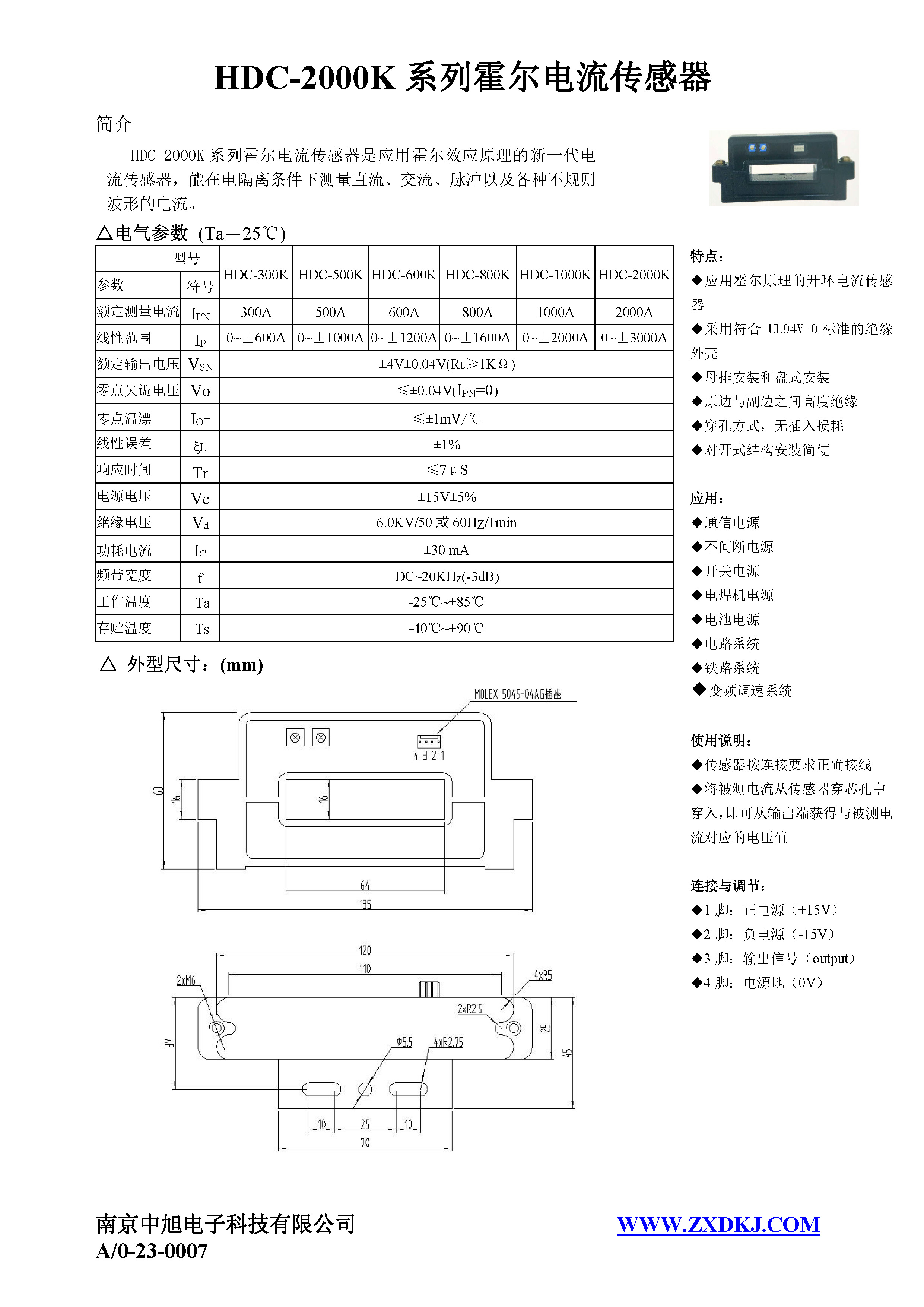 HDC-2000K系列霍爾電流傳感器是應(yīng)用霍爾效應(yīng)原理的新一代電流傳感器,能在電隔離條件下測量直流、交流、脈沖以及各種不規(guī)則波形的電流。